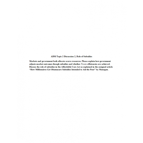 ADM 614 Topic 2 Discussion 2, Role of subsidies