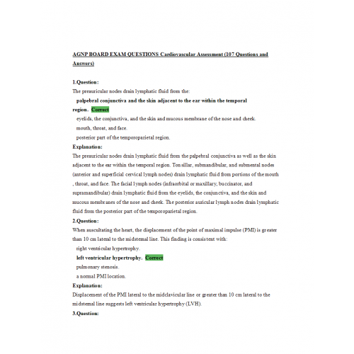 AGNP BOARD EXAM QUESTIONS Cardiovascular Assessment (107 Questions and Answers)