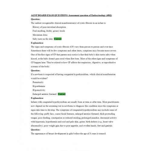 AGNP BOARD EXAM QUESTIONS Assessment question of Endocrinology (48 Question and Answers)