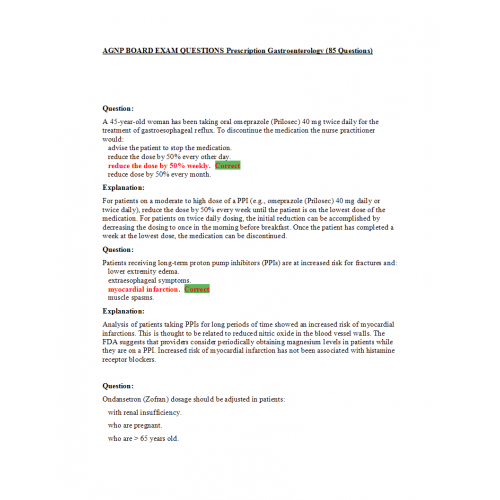 AGNP BOARD EXAM QUESTIONS Prescription Gastroenterology (85 Questions)
