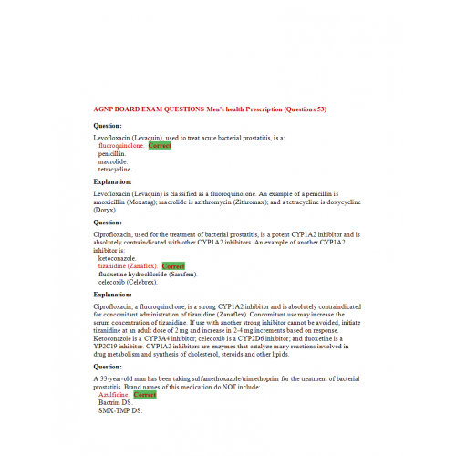 AGNP BOARD EXAM QUESTIONS Men's health Prescription (Questions 53)