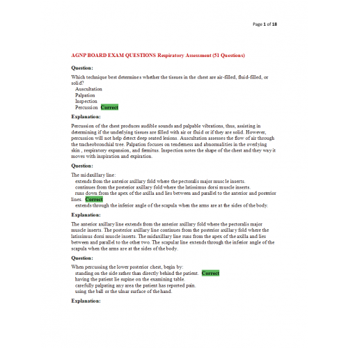 AGNP BOARD EXAM QUESTIONS Respiratory Assessment (51 Questions)
