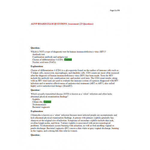 AGNP Board Exam Question and Answers - Sexually Transmitted Diseases Assessment