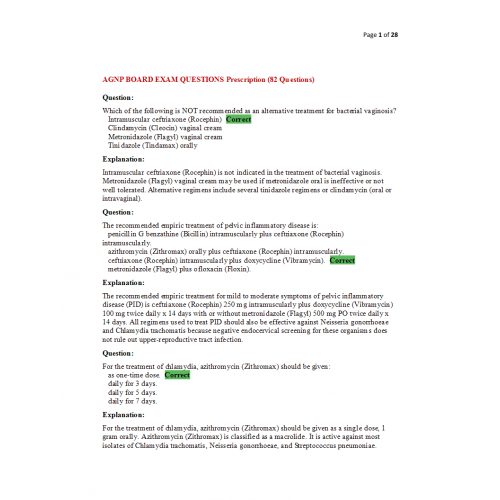 AGNP BOARD EXAM QUESTIONS Prescription (82 Questions)