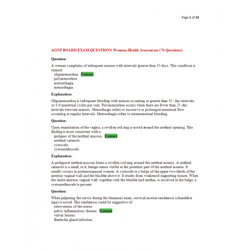 AGNP BOARD EXAM QUESTIONS Womens Health Assessment (70 Questions)