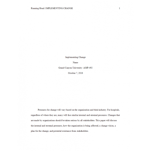 AMP 492 Week 6 Assignment 2, Implementing Change