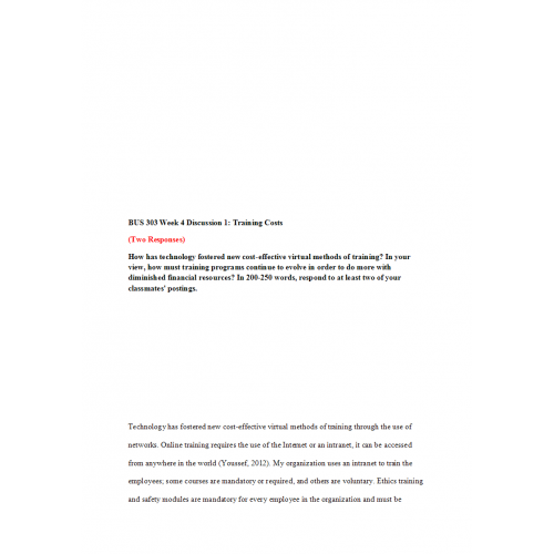 BUS 303 Week 4 Discussion 2, Training and Career Development