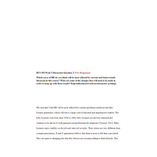 BUS 303 Week 5 Discussion 2, The Future of HRM