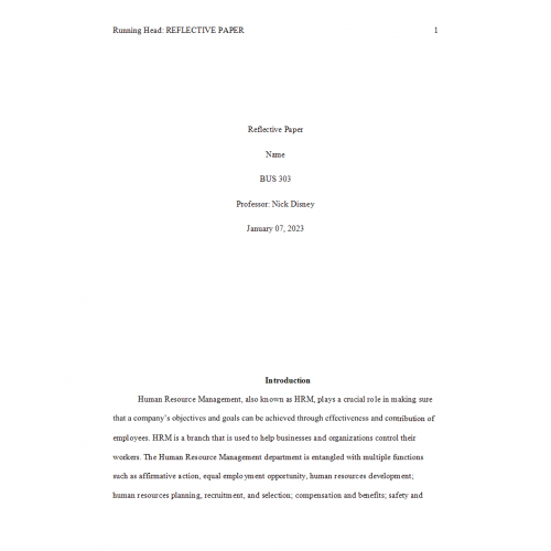 BUS 303 Week 5 Final Reflective Paper 1, The Multiple Roles of Human Resource Managers