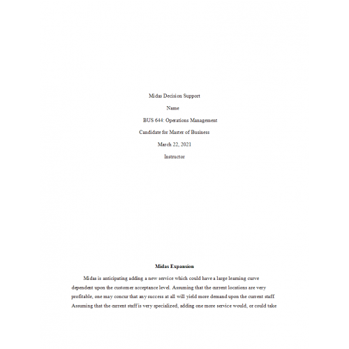BUS 644 Week 1 Assignment, Midas Case Study 2