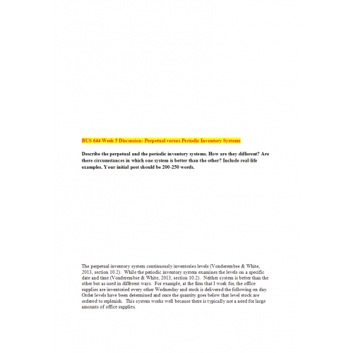 BUS 644 Week 5 Discussion: Perpetual versus Periodic Inventory Systems |
