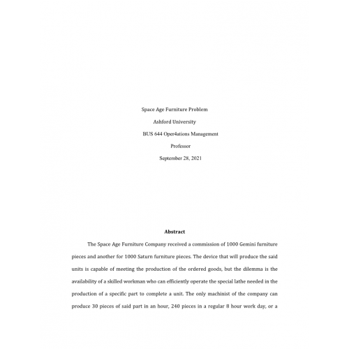 BUS 644 Week 6 Final Paper, Space Age Furniture Problem
