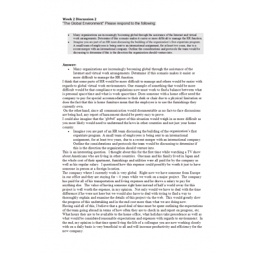 - Many organizations are increasingly becoming global through the assistance of the Internet and virtual work arrangements. Determine if this scenario makes it easier or more difficult to manage the HR function.