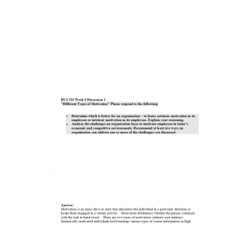 BUS310 Week 9 Discussion 2, Different Types of Motivation