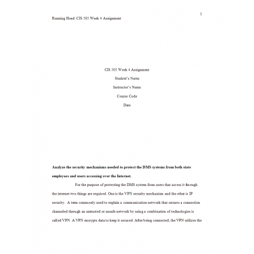 CIS 505 Week 10 Term Paper, Networking (Internet Security)