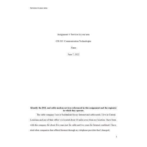 CIS 505 Week 8 Assignment 4, Services in Your Area 1