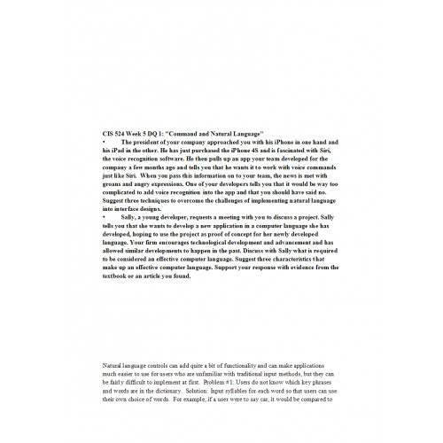 CIS 524 Week 5 DQ 1: Command and Natural Language