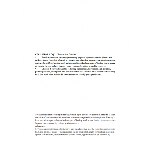 CIS 524 Week 6 DQ 1, Interaction Devices