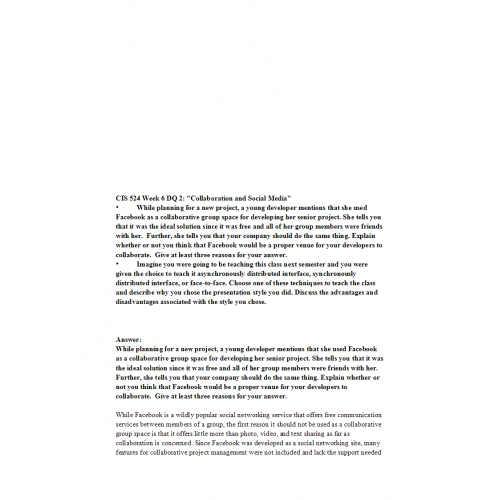 CIS 524 Week 6 DQ 2: Collaboration and Social Media