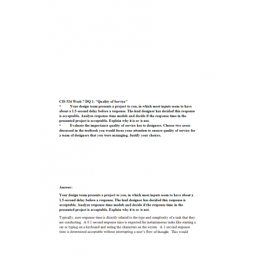 CIS 524 Week 7 DQ 1: Quality of Service