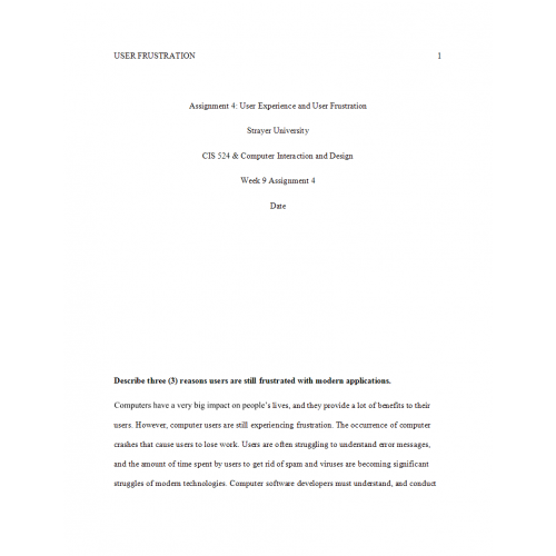 CIS 524 Week 9 Assignment 4 User Frustration Paper 2