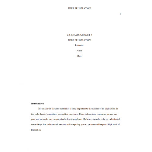 CIS 524 Week 9 Assignment 4 User Frustration Paper 2