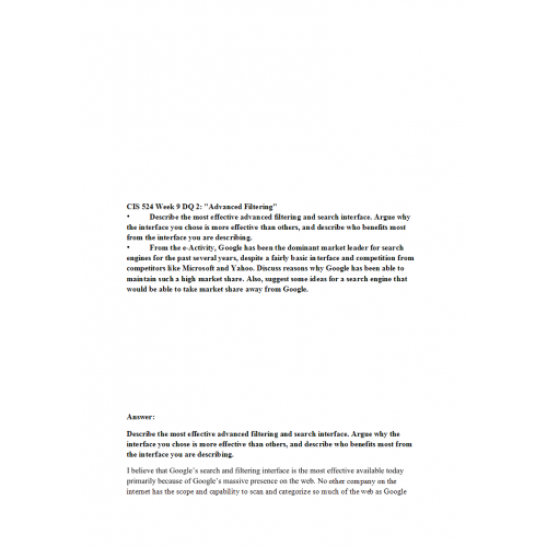CIS 524 Week 9 DQ 2: Advanced Filtering