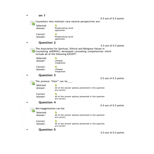 2. The Association for Spiritual, Ethical and Religious Values in Counseling (ASERVIC) developed counseling competencies which include all of the following EXCEPT:
