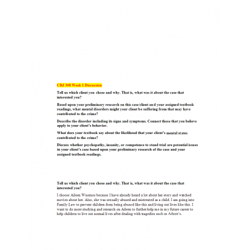 CRJ 308 Week 1 Discussion 1, Choose Your Client