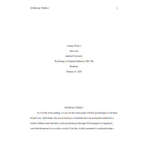 CRJ 308 Week 1 Journal, Diagnosing Criminal Defendants