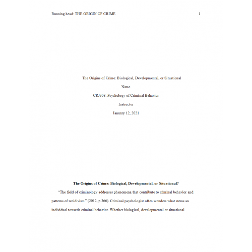 CRJ 308 Week 2 Assignment, The Origins of Crime