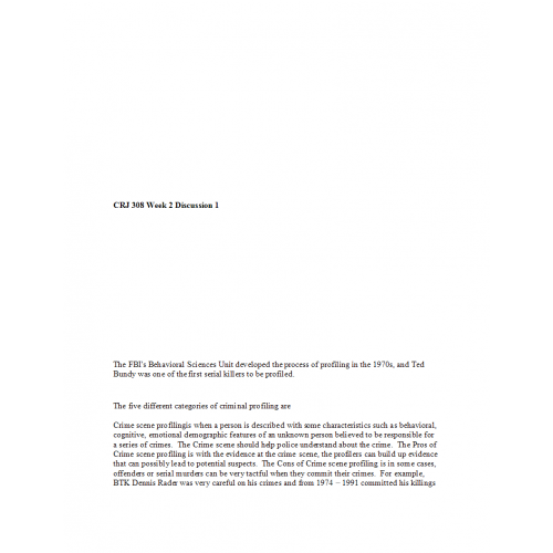 CRJ 308 Week 2 Assignment, Discussion - Complete
