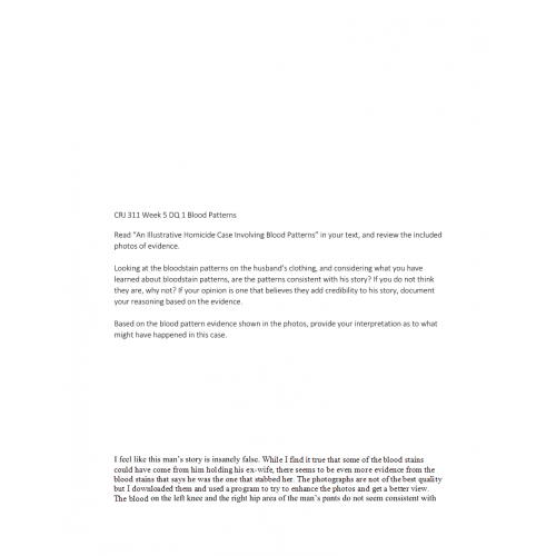 CRJ 311 Week 5 DQ 1 Blood Patterns