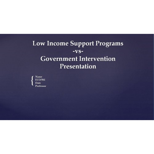 ECO 561 Week 2 Assignment, Low Income Support Programs vs Govt Intervention