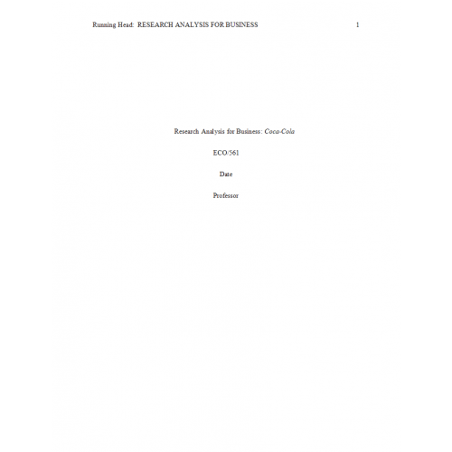 ECO 561 Week 3 Individual Assignment, Research Analysis for Business (Coca-cola)
