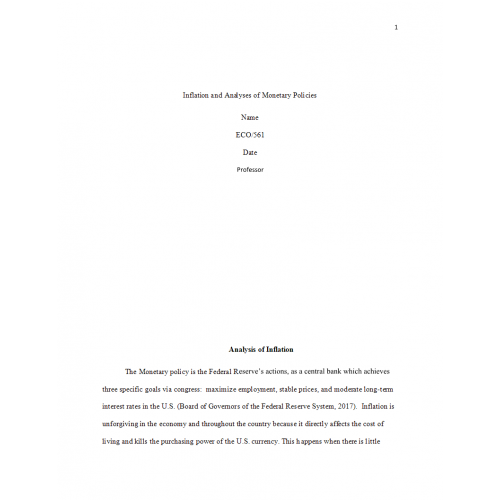 ECO 561 Week 4 Individual Assignment, Inflation and Analysis of Monetary Policies