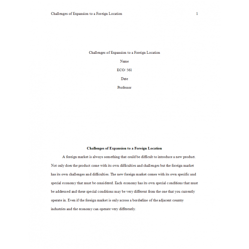 ECO 561 Week 6 Individual Assignment, Challenges of Expansion to a Foreign Location (Walmart)