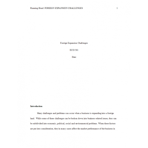 ECO 561 Week 6 Individual Assignment, Challenges of Expansion to a Foreign Location (Walmart)
