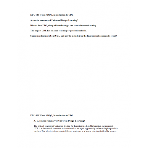EDU 620 Week 3 DQ 1, Introduction to UDL