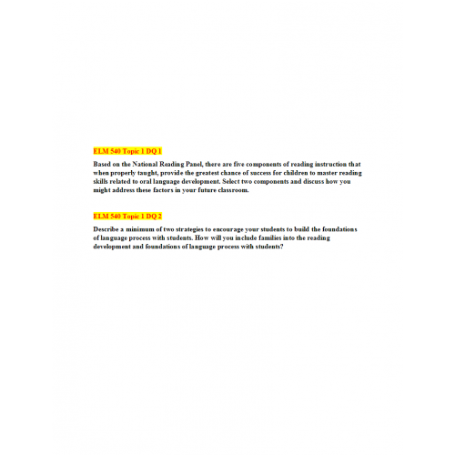 ELM 540 Topic 1 Discussion 1 and 2 with Answers