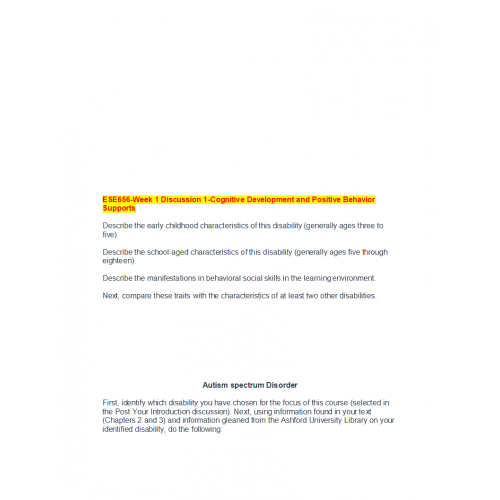 ESE 656 Week 1 Discussion 2, Cognitive Development and Positive Behavior Supports