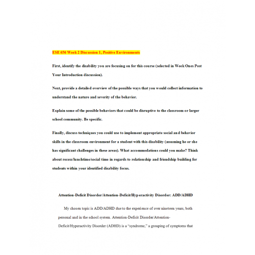 ESE 656 Week 2 Discussion 1, Positive Environment