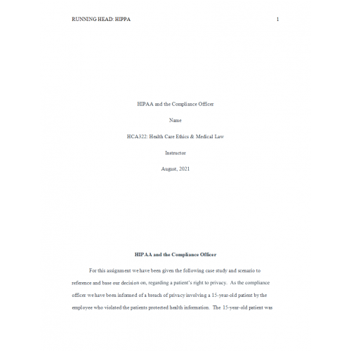 HCA 322 Week 5 Final Paper, Case Study 1, HIPAA Privacy Rule