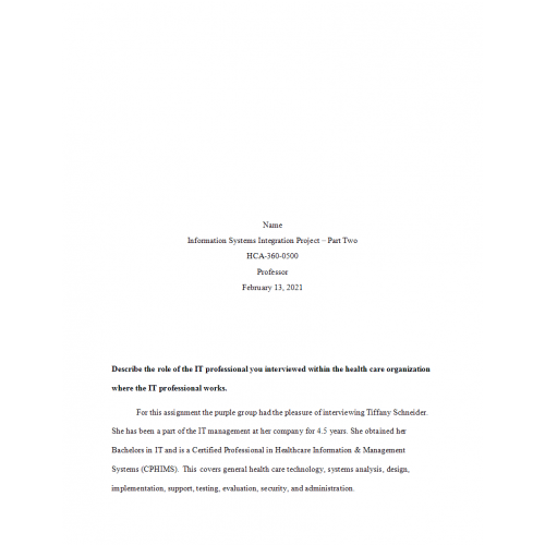 HCA 360 Week 4 Information Systems Integration Project Part Two: 2021