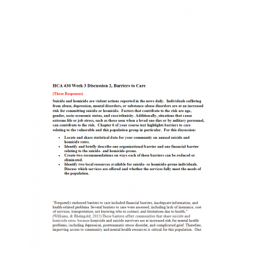 HCA 430 Week 3 Discussion 2, Barriers to Care