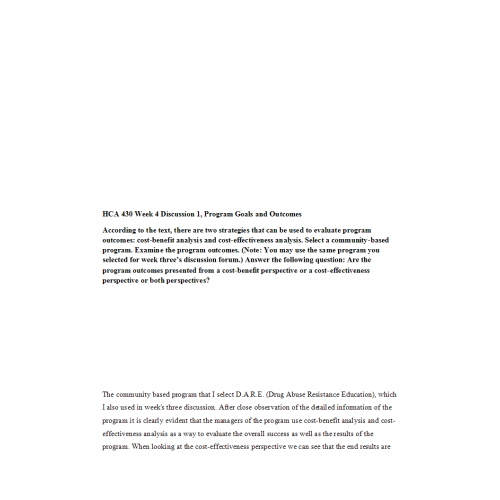 HCA 430 Week 4 Discussion 3, Program Goals and Outcomes