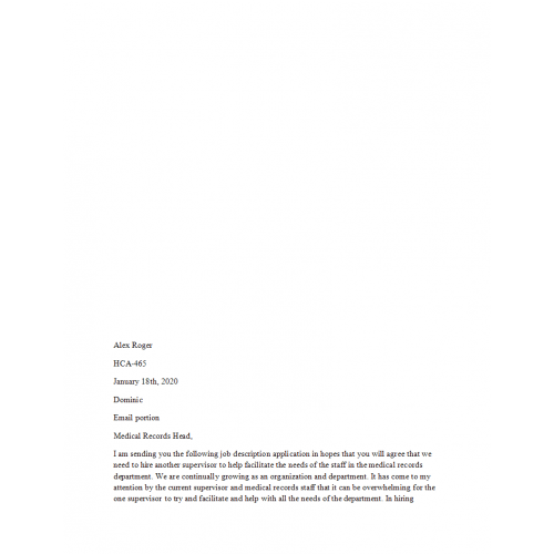 HCA 465 Topic 4 Assignment, Healthcare Job Analysis