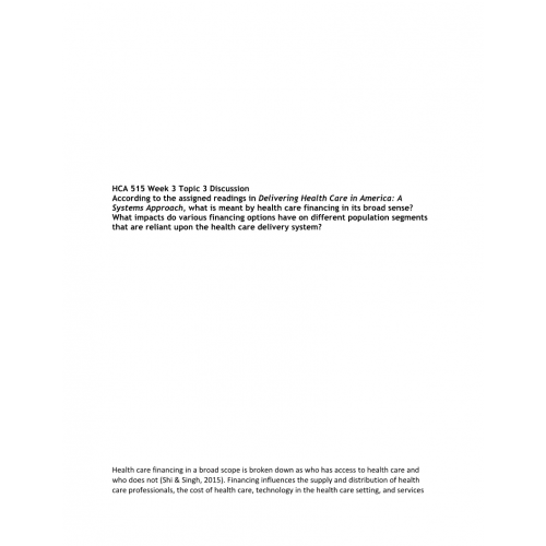 HCA 515 Week 3 Topic 3 Discussion
