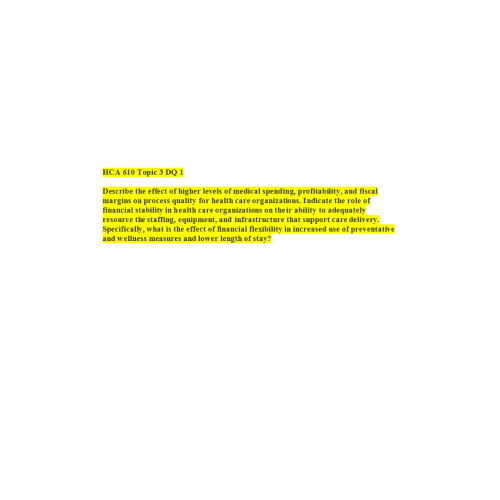 Describe the effect of higher levels of medical spending, profitability, and fiscal margins on process quality for health care organizations. Indicate the role of financial stability in health care organizations on their ability to adequately resource the staffing, equipment, and infrastructure that support care delivery. Specifically, what is the effect of financial flexibility in increased use of preventative and wellness measures and lower length of stay?