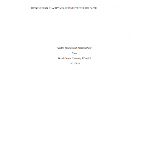 HCA 610 Week 7 Assignment, Quality Measurement Research Paper